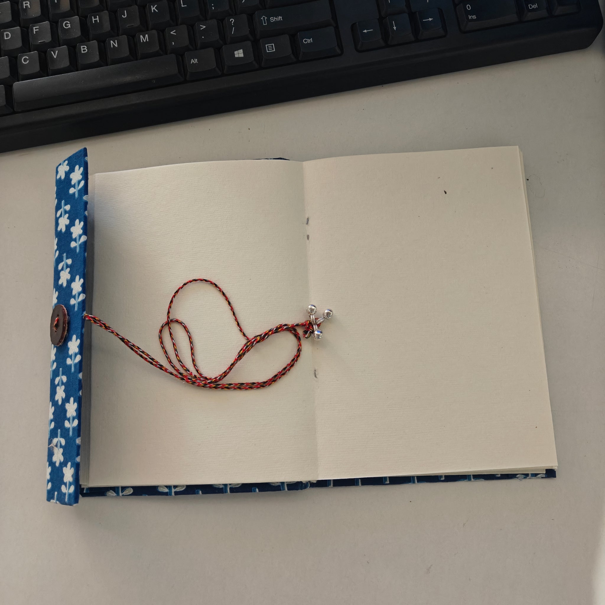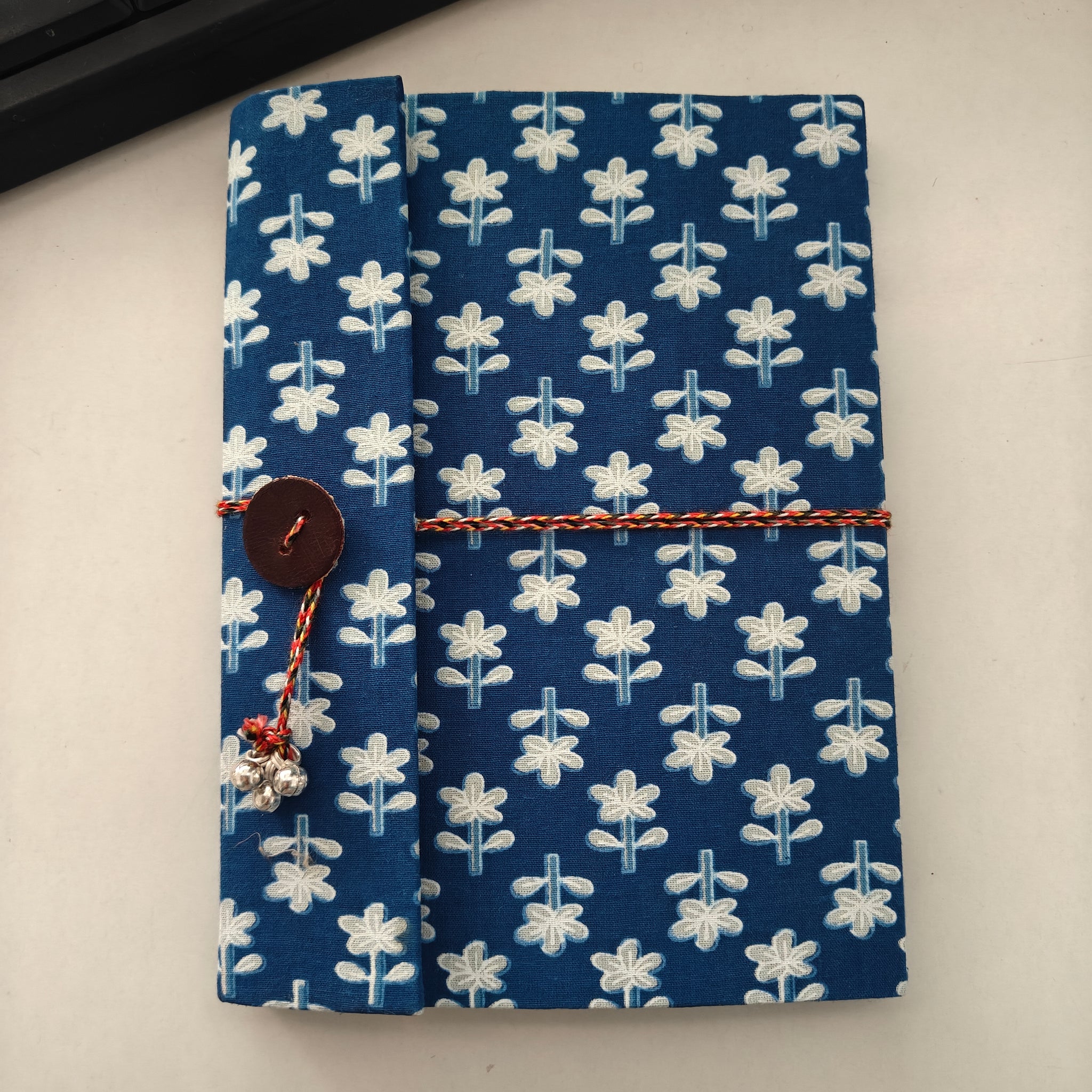 - Single bound diaries in hand-block printed fabric covers that allow a smooth