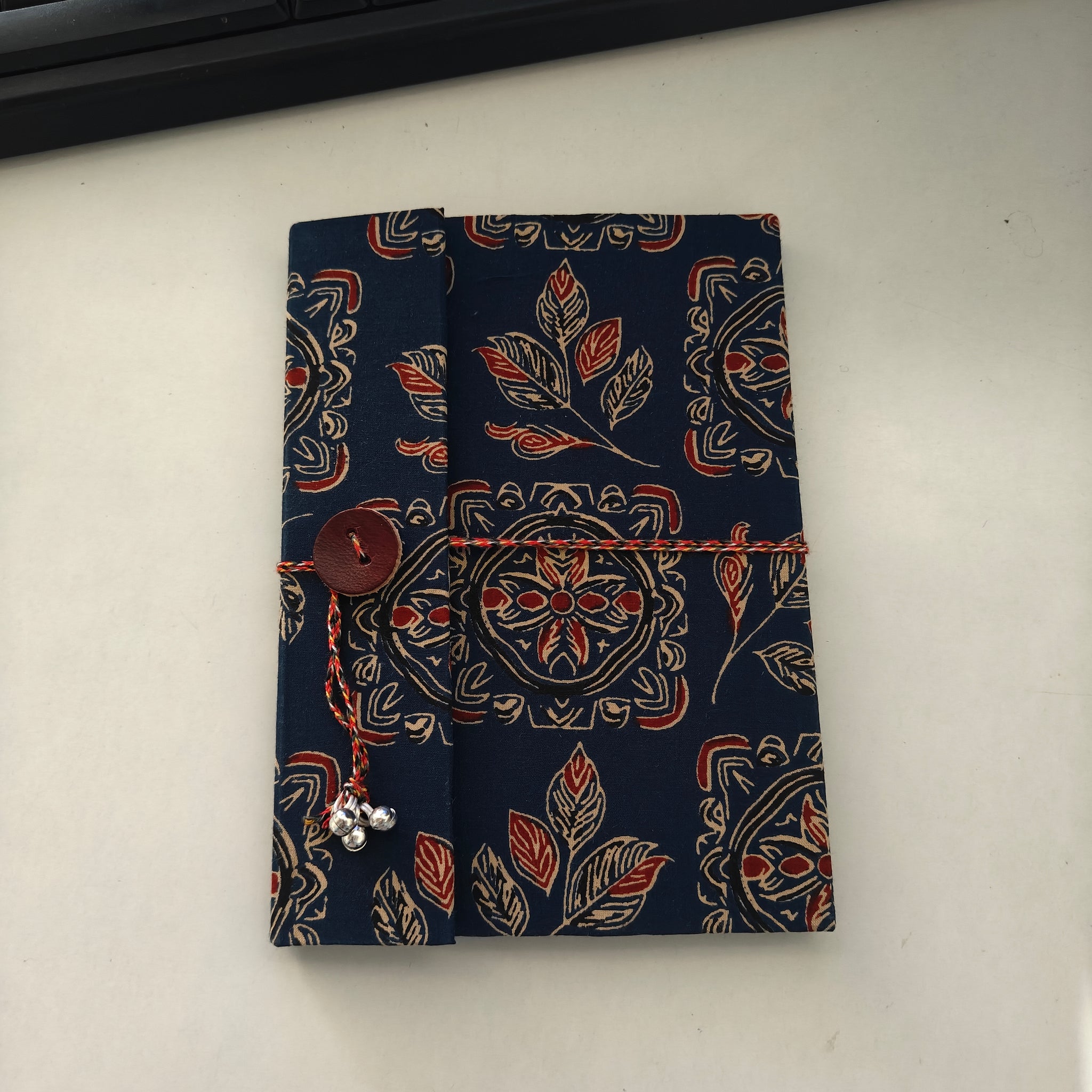 - Single bound diaries in hand-block printed fabric covers that allow a smooth