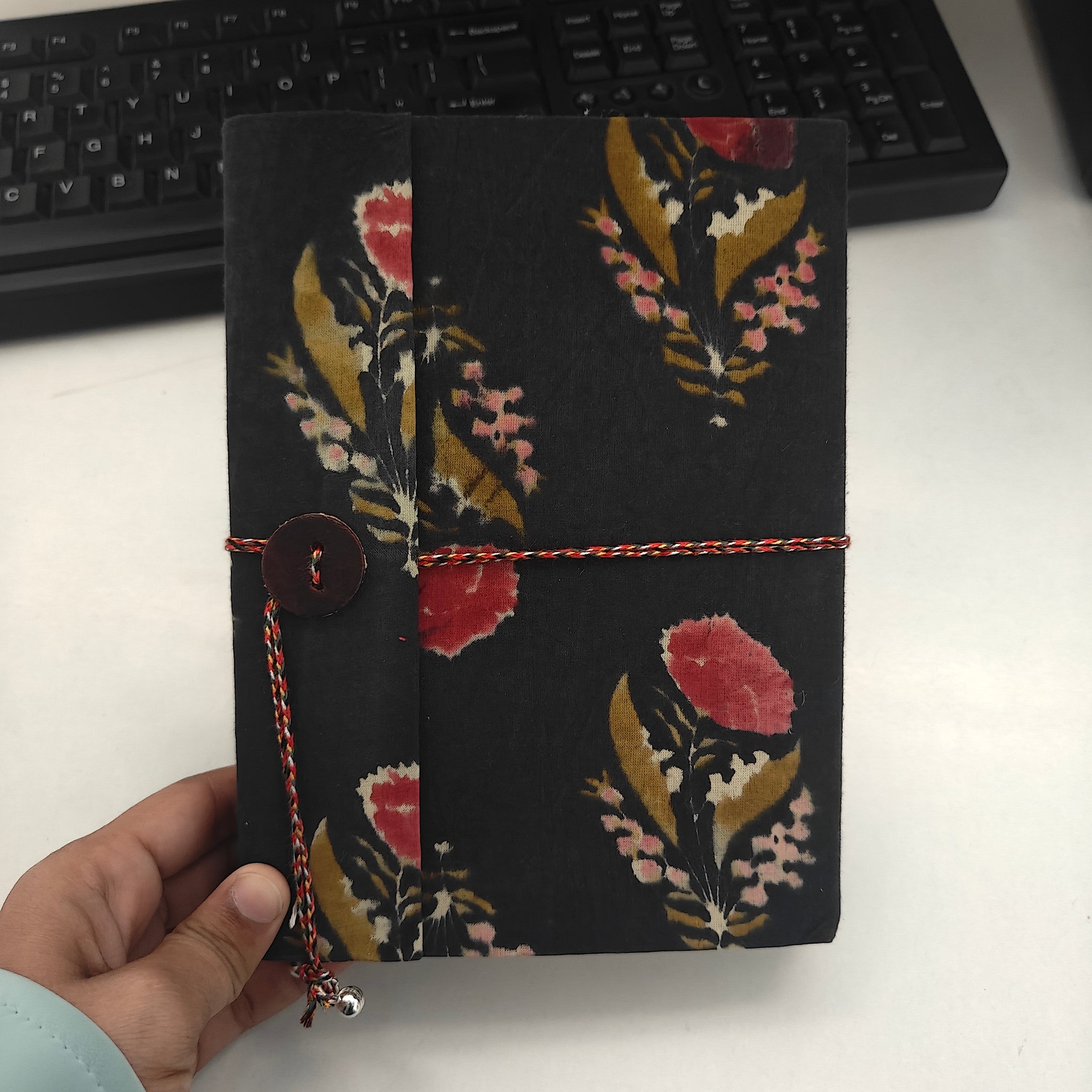 - Double bound diaries in hand-block printed fabric covers that allow a smooth