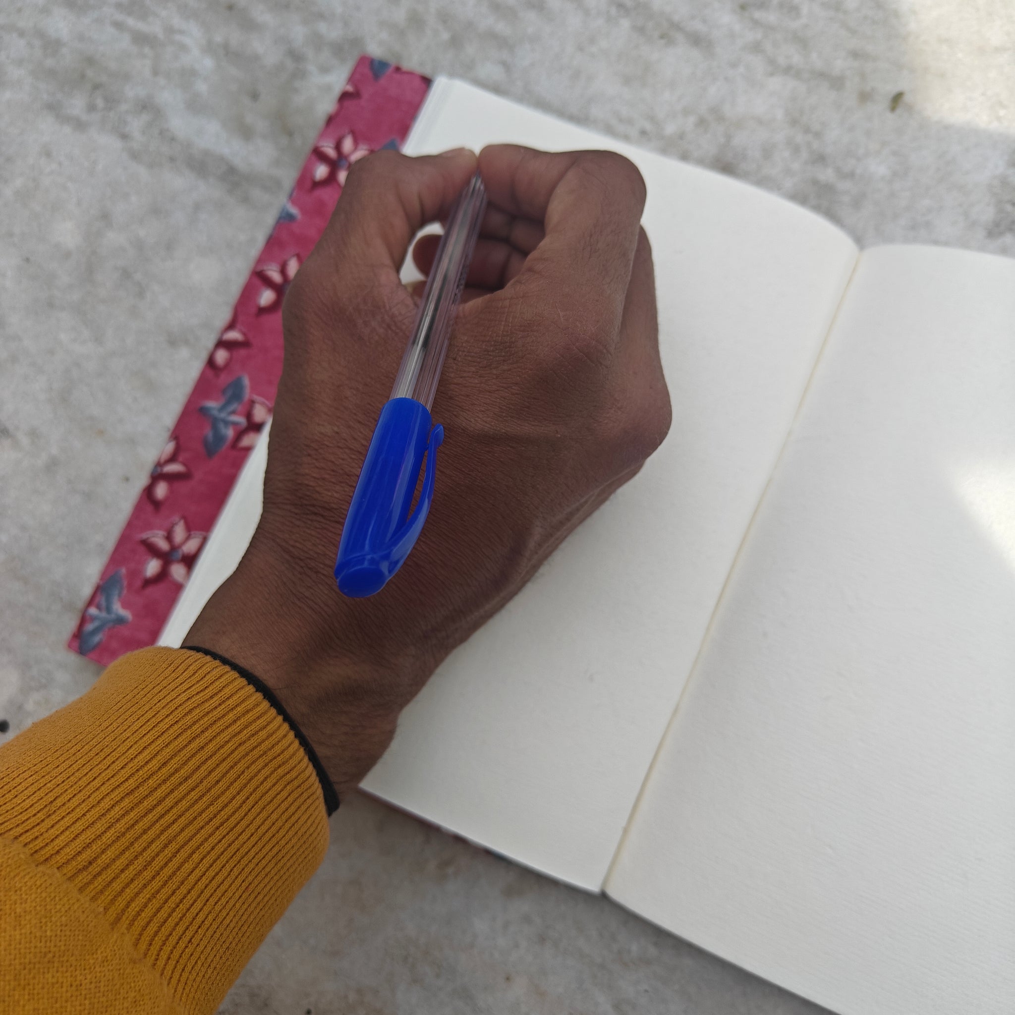 - Double bound diaries in hand-block printed fabric covers that allow a smooth